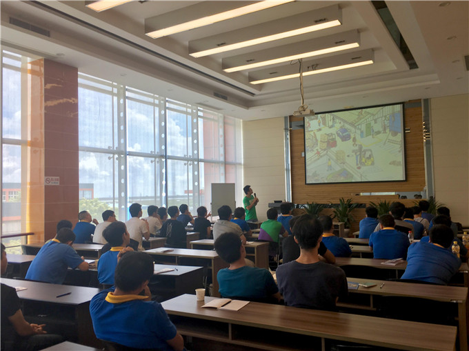 其次,精益部代表以公司員工的優(yōu)秀精益提案為例,生動地解釋精益生產(chǎn)的必要性,提倡“全員參與,共創(chuàng)精益”,逐步深化新員工的精益意識。接著安全委員會代表通過分享真實(shí)的案例,結(jié)合公司生產(chǎn)的現(xiàn)實(shí)環(huán)境,學(xué)習(xí)各類安全事故的實(shí)際應(yīng)急救援方法,提高新員工的安全防范意識。