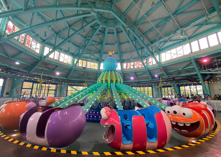 超萌漩漩渦則是國(guó)內(nèi)首個(gè)64座大型自控飛機(jī)類(lèi)項(xiàng)目,也是全世界最大、乘坐人數(shù)最多的自控飛機(jī)類(lèi)項(xiàng)目之一。作為孩童最熱愛(ài)小黃人區(qū)域,設(shè)備的外觀打造上工程師們頗費(fèi)心思,為了還原動(dòng)漫角色Q萌活潑的形象,模具的制作上采取了3D打印技術(shù),使造型更逼真立體。同時(shí),我們安全束縛裝置進(jìn)行了超過(guò)50萬(wàn)次的反復(fù)測(cè)試,令設(shè)備使用更安全可靠。