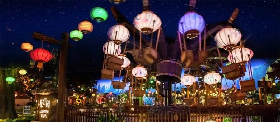 功夫熊貓蓋世之地屬于北京環(huán)球影城獨(dú)有,燈影傳奇也是國(guó)內(nèi)首創(chuàng)的設(shè)備。這一設(shè)備最大的特點(diǎn)是中國(guó)傳統(tǒng)文化跟現(xiàn)代游樂(lè)的相互融合,設(shè)備既有傳統(tǒng)建筑的元素,也有傳統(tǒng)燈籠的造型,燈籠上還有經(jīng)典的皮影戲元素;通過(guò)這些,把傳統(tǒng)文化以一種動(dòng)態(tài)的體驗(yàn)呈現(xiàn)給游客。為了還原中國(guó)復(fù)古燈籠的造型和效果,我們從燈籠骨架的設(shè)計(jì)、布料的選型、圖案的印刷工藝、縫制工藝到燈光的變色控制等,都經(jīng)過(guò)了反復(fù)的測(cè)試和改良,其中燈籠布料的選材既要求布料潤(rùn)澤有質(zhì)感,又要經(jīng)久耐用能承受長(zhǎng)期的張力,還要彈性軟硬適中不能起一絲皺褶,為此我們經(jīng)歷了6輪試制與測(cè)試,反復(fù)改良工藝,力求每個(gè)細(xì)節(jié)都能完美展現(xiàn)中國(guó)傳統(tǒng)燈籠的效果。