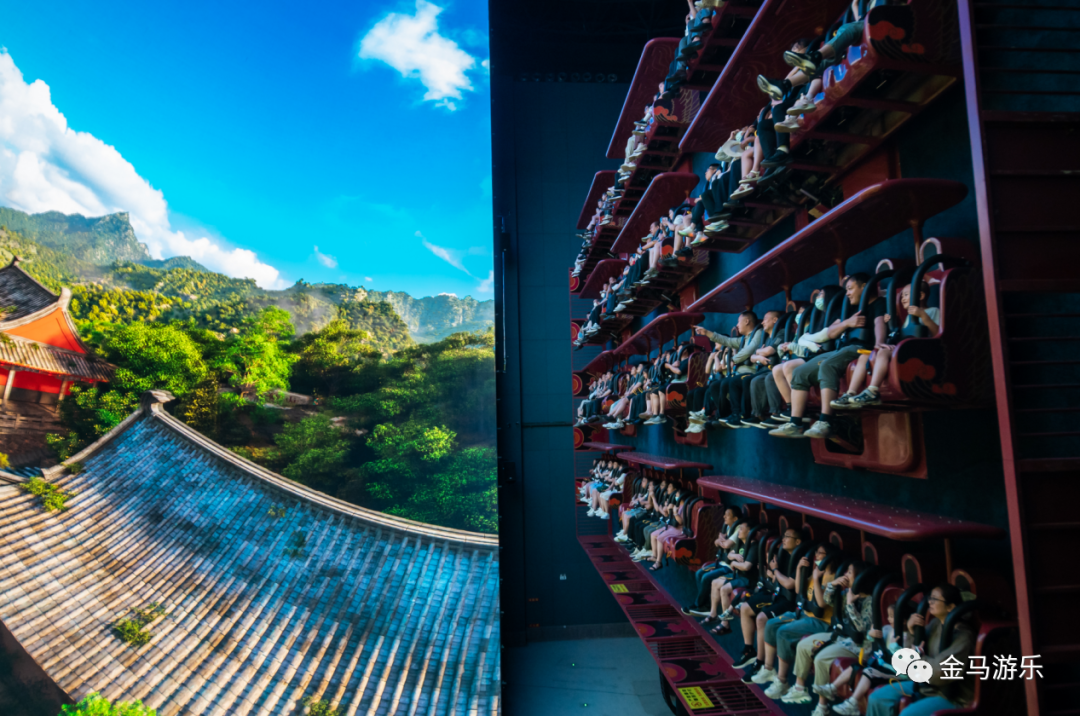 《飛越泰山》項(xiàng)目是目前全國最大的翻轉(zhuǎn)式飛行影院,2900㎡立體影院,可容納96人觀影。影視內(nèi)容以泰山及泰安地域文化為主旋律,通過多自由度動感座椅與巨幕8K影視畫面結(jié)合,令游客仿佛乘坐飛行器置身高空凌空飛翔,從云海出發(fā),飛越泰山、泰安老街、天平湖景區(qū)等場景。飛越視角高低快慢,配合噴氣、噴水等特效,讓游客以虛擬沉浸方式飽覽五岳獨(dú)尊的壯麗巍峨。