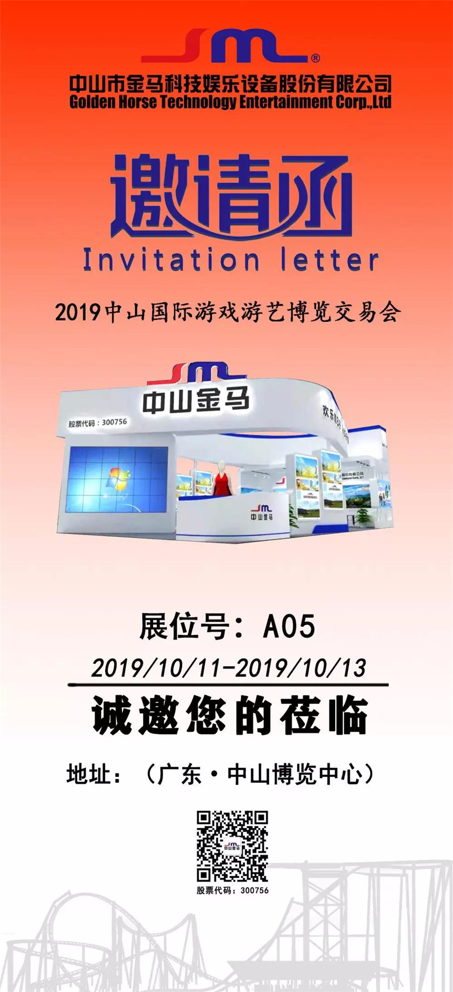 【中山金馬】尊敬的先生\女士:衷心的感謝您及貴公司對(duì)中山金馬一如既往的支持和信賴,我司即將參加2019中山國(guó)際游戲游藝博覽交易會(huì),在此我們誠(chéng)摯的邀請(qǐng)您前來觀展。