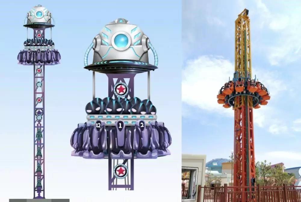 QWT-12D旋轉(zhuǎn)青蛙跳是一款塔類游樂項(xiàng)目,主要由塔體、塔底架、座艙組成,通過鋼絲繩,滑輪組和油缸帶動(dòng)下,座艙可以在塔體上做上下移動(dòng)。通過使用蓄能器和電氣控制,使座艙完成像青蛙一樣跳動(dòng)的動(dòng)作,讓游客經(jīng)歷從失重,到減速,再到回彈等一系列連貫的動(dòng)作,充分體驗(yàn)到這種連貫跳躍的樂趣。除此之外,座艙結(jié)構(gòu)分為內(nèi)外圈,外圈乘客部分在跳躍過程中,還會(huì)隨著電機(jī)的帶動(dòng)下旋轉(zhuǎn),增加跳躍動(dòng)作的復(fù)雜性,并增加游客的視覺空間。