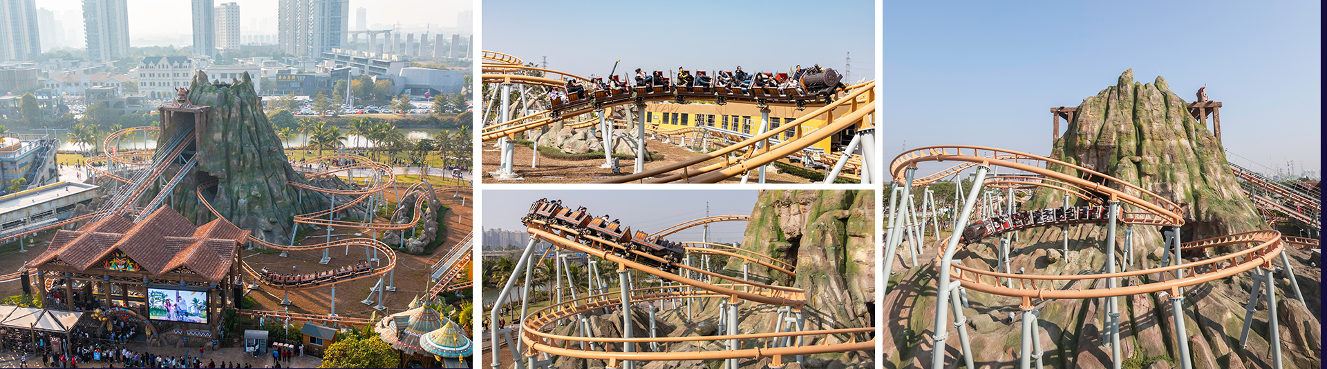 礦山車模仿古代礦山列車運(yùn)行模式,采用仿古式的火車造型,游客仿佛置身于礦山現(xiàn)場。全程路軌設(shè)有兩個提升段,配合先進(jìn)變軌技術(shù)、減震膠與柔和的永磁制動,為乘客乘坐帶來舒適靜謐的體驗(yàn)。同時獨(dú)特的壓腹式壓杠結(jié)構(gòu),確保包括?度1.1m以上兒童可被有效束縛,增大游客受眾范圍。