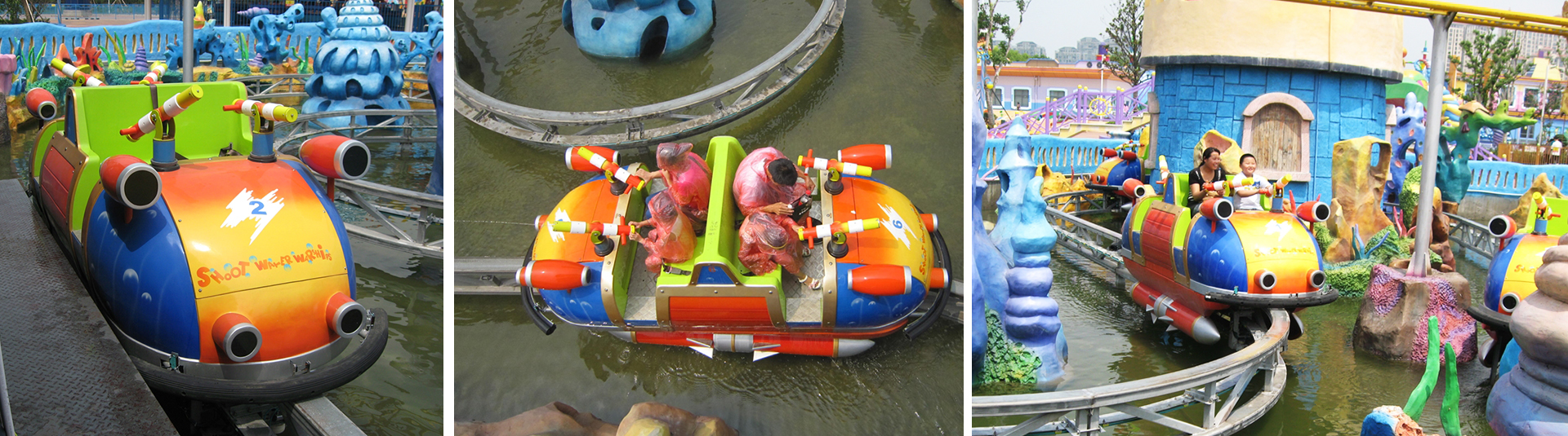 射?戰(zhàn)船是?套互動(dòng)性較強(qiáng)的?上游樂(lè)設(shè)備。乘客在乘坐戰(zhàn)船過(guò)程中可使?射?槍向其它戰(zhàn)船上的乘客進(jìn)?射?,互相嬉戲??啥ㄖ苽€(gè)性化主題造景,增強(qiáng)互動(dòng)效果。