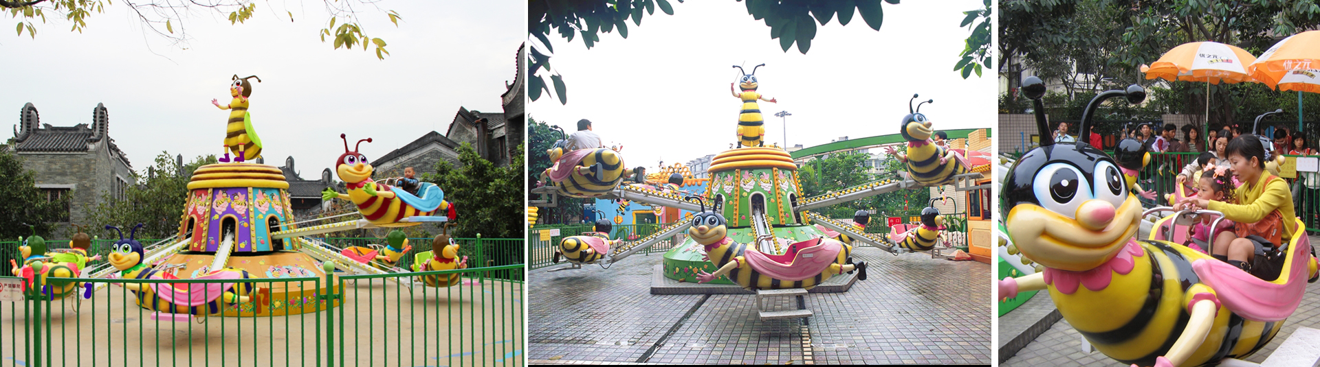 小蜜蜂翩翩起舞,造型獨(dú)特、色彩豐富。運(yùn)行過(guò)程中猶如一群可愛(ài)的小蜜蜂相互嬉戲,深受小朋友的喜歡。