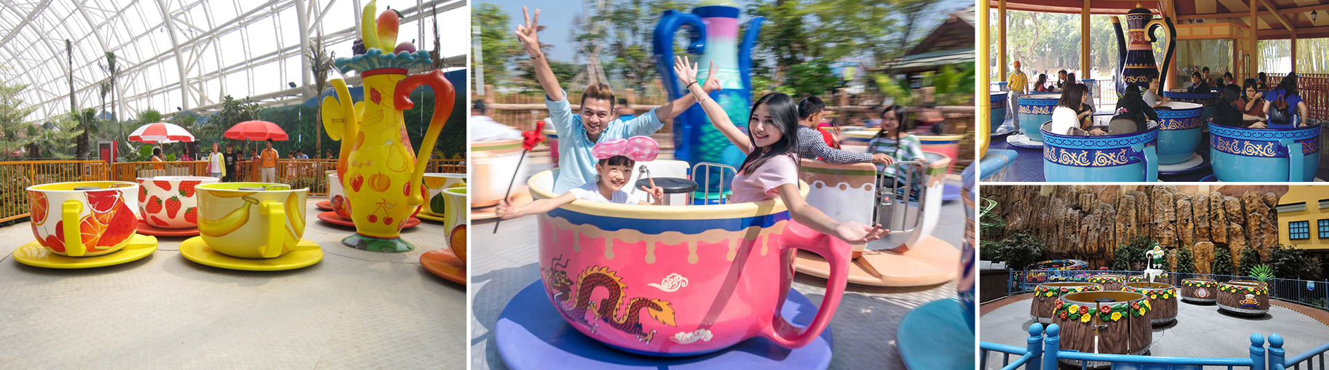轉(zhuǎn)轉(zhuǎn)杯設(shè)備是由軌道、大盤、小盤及杯體組成,美食主題外觀,乘客坐在杯中體驗(yàn)多重復(fù)合轉(zhuǎn)動所帶來的旋轉(zhuǎn)樂趣。