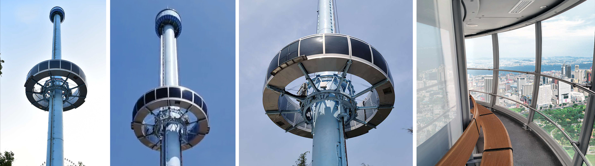觀景塔可容納60人,運(yùn)營高效。塔體配備配重裝置,抵消艙體大部分重量,降低提升所需功率,從而達(dá)到降低運(yùn)營成本的效果。塔底配置緩沖裝置,為乘客提供輕緩的乘坐體驗(yàn),讓乘客在舒適的環(huán)境中飽覽周邊美景