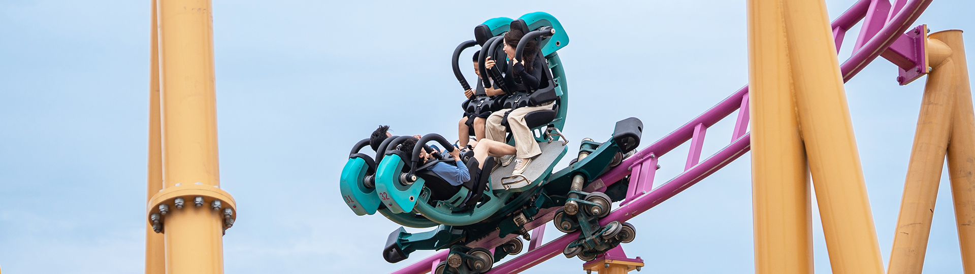 超炫過(guò)??將720°螺旋下降、?平螺旋環(huán)等元素與?轉(zhuǎn)回旋?體結(jié)合,同時(shí)創(chuàng)新地將過(guò)??有傾?的路軌引?到?旋滑?的軌道中,打造出兼具失重、超重和回旋的多重游玩體驗(yàn)。四??體中游客兩兩對(duì)坐,促進(jìn)互動(dòng)交流。奧德賽歷險(xiǎn)創(chuàng)意主題造型吸引著眾多情侶、親?游客前來(lái)挑戰(zhàn)。