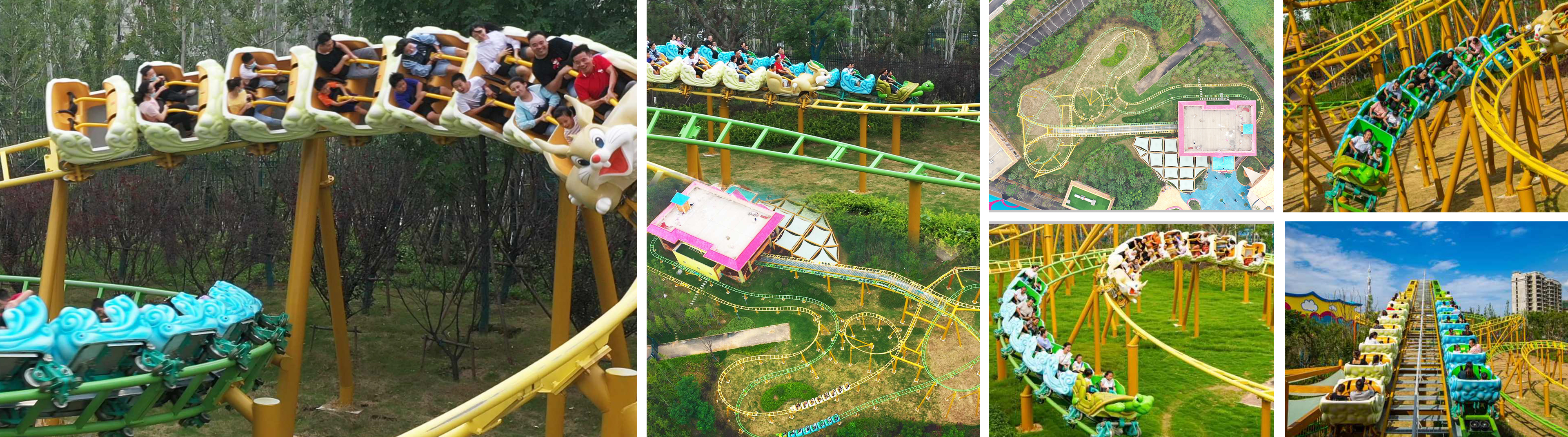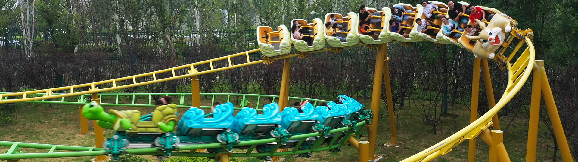 雙軌家庭過山車,共有A、B兩條軌道交互布局,每條軌道上各運行一列車,兩列車可同時出發(fā),雙車并行如競速賽跑,故又名“龜兔賽跑”。競賽元素為乘客提供更加有趣的乘坐體驗,適合親子家庭群體游玩。