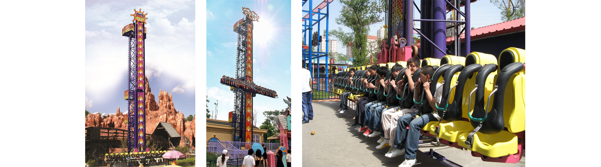跳躍云霄以跳躍為主題,十六座座艙沿著豎直的立柱軌道作上升、下降和連貫的跳躍運動,使乘客在超重與失重的過程中體驗到跳躍樂趣。
