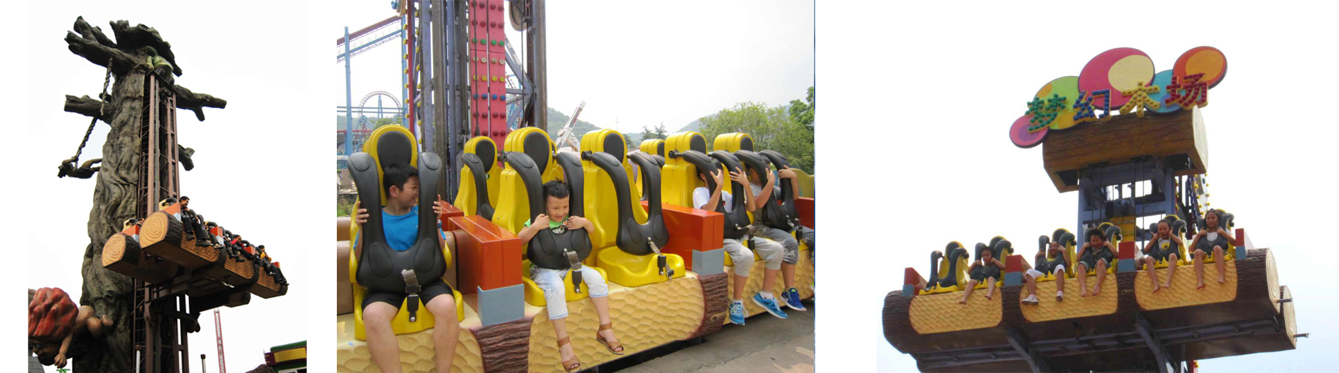 雙排青蛙跳以跳躍為主題,座艙在塔體上做上下移動,當(dāng)運(yùn)行到最高位置時座艙會向前傾轉(zhuǎn)約10°,令乘客體驗(yàn)到失重、超重以及在高空突然前傾的多重游玩感受。