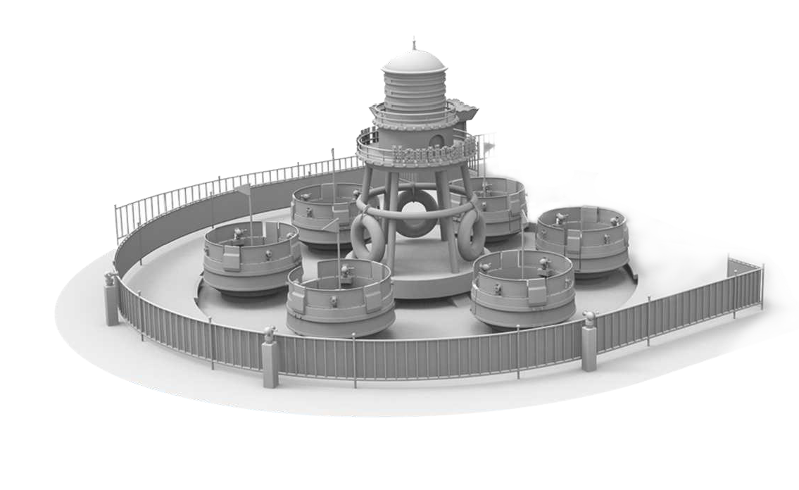 航海?戰(zhàn)是以海洋?戰(zhàn)為主題的轉?類親?設備。巧妙利?中?燈塔回轉?撐連接轉臂帶動艙體公轉,同時圍繞艙體??中?軸線順時針和逆時針交替旋轉;每個船艙設有4個?槍,各船之間可參與海戰(zhàn)與“?槍?”互相射擊,使在巨浪旋轉中的親?海戰(zhàn)更加激烈有趣。
