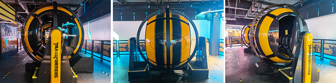 360滾艙是新型交互式動感體驗(yàn)項(xiàng)目。乘客進(jìn)入球形座艙,壓桿壓好后,酷炫的座艙配合艙內(nèi)影視內(nèi)容繞X軸、Z軸在360°范圍內(nèi)做旋轉(zhuǎn)動作,讓乘客置身于超感官視覺體驗(yàn)中