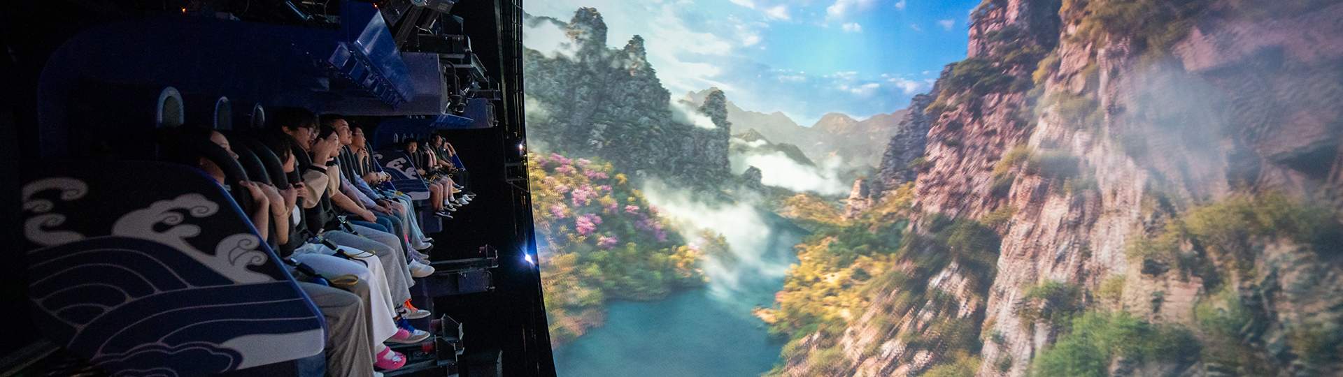 平推式飛行影院采用獨特的六自由度懸掛式動感座椅,逼真模擬墜落、爬升、轉(zhuǎn)彎等動作,與巨型大球幕影片內(nèi)容配合,產(chǎn)生身臨其境的全景式包圍的真實飛行,給游客帶來一場翱翔于空中的強烈沉浸式體驗。